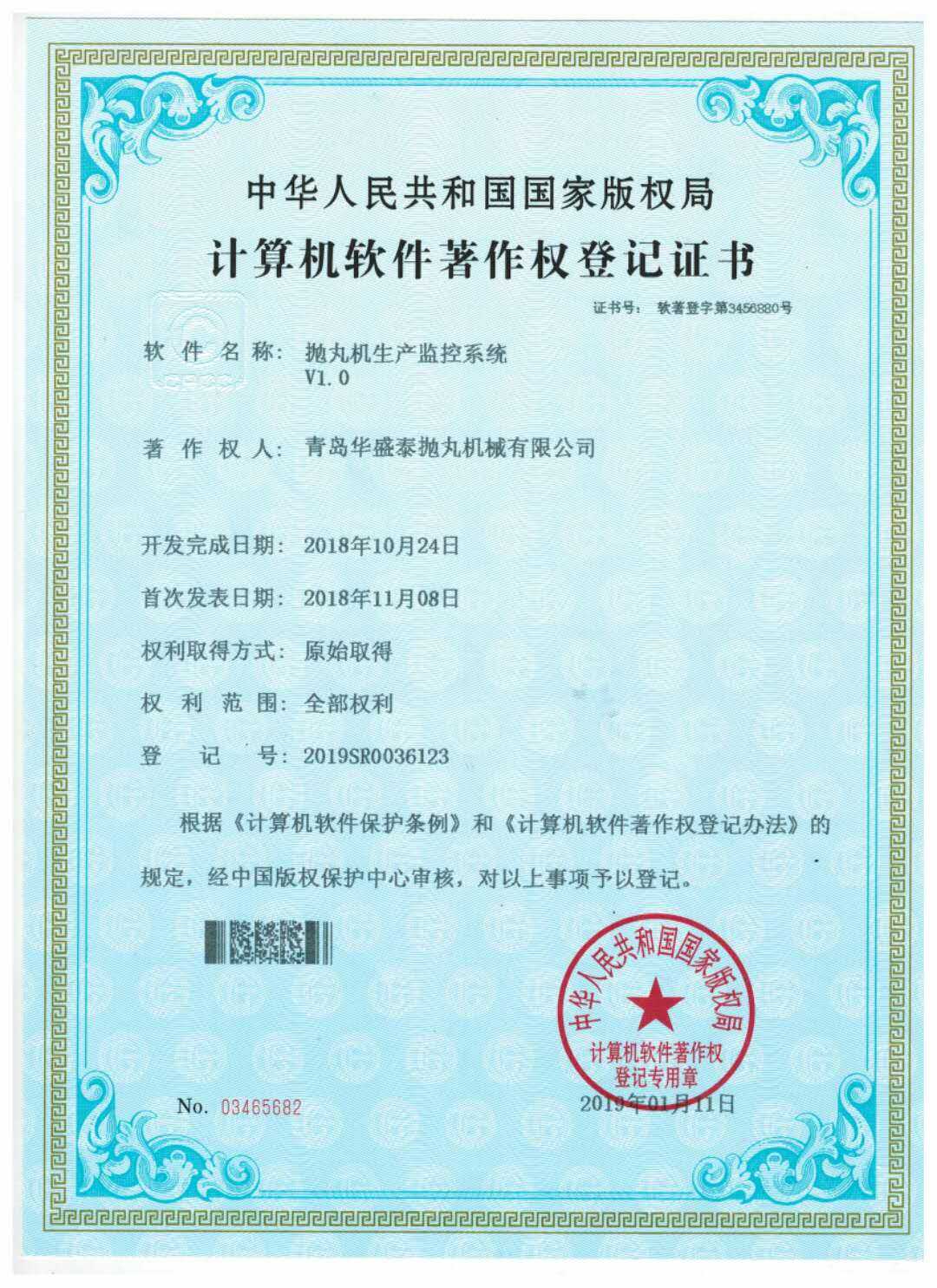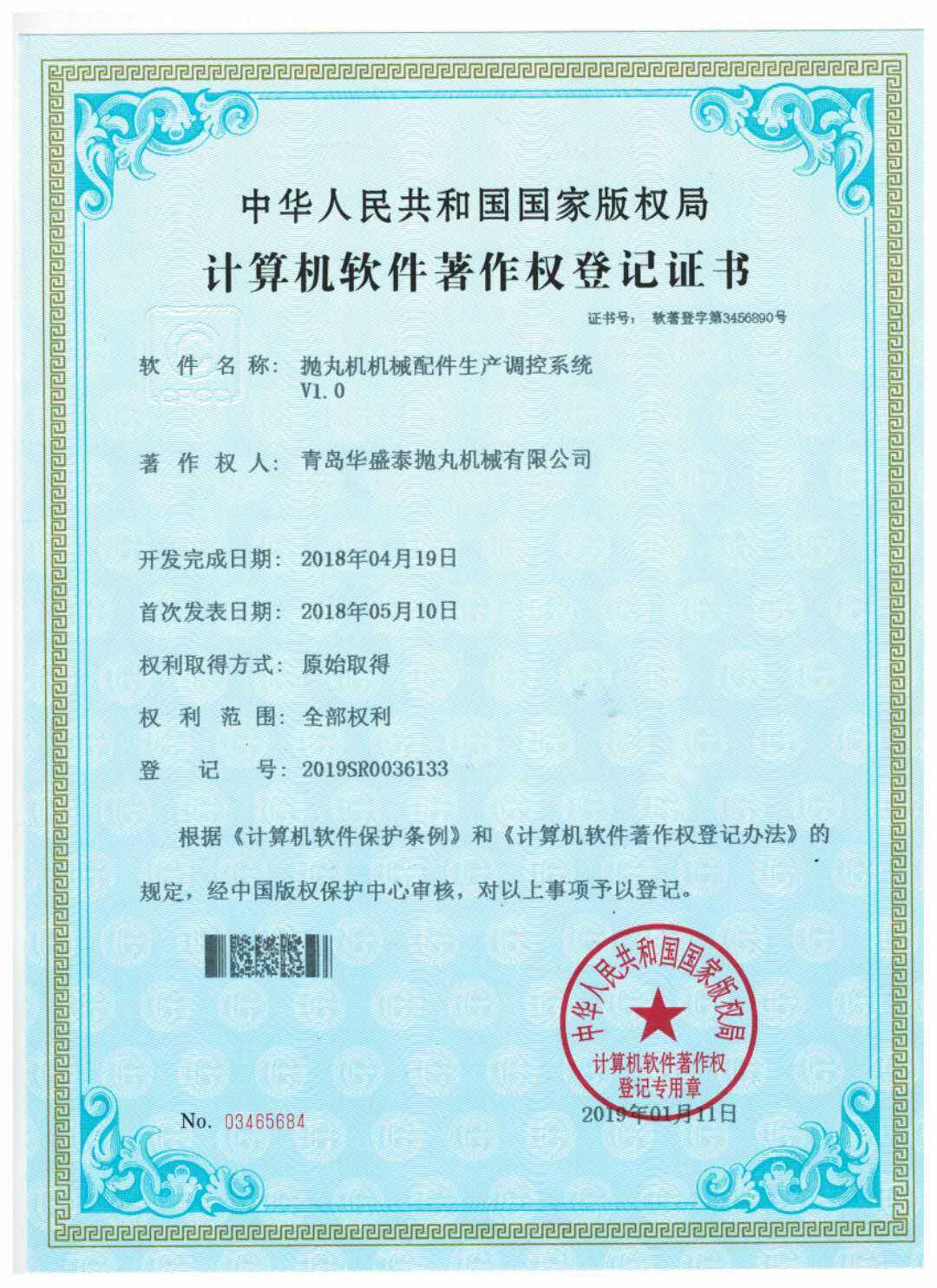 • 計(jì)算機(jī)軟件著作權(quán)登記證書(shū)