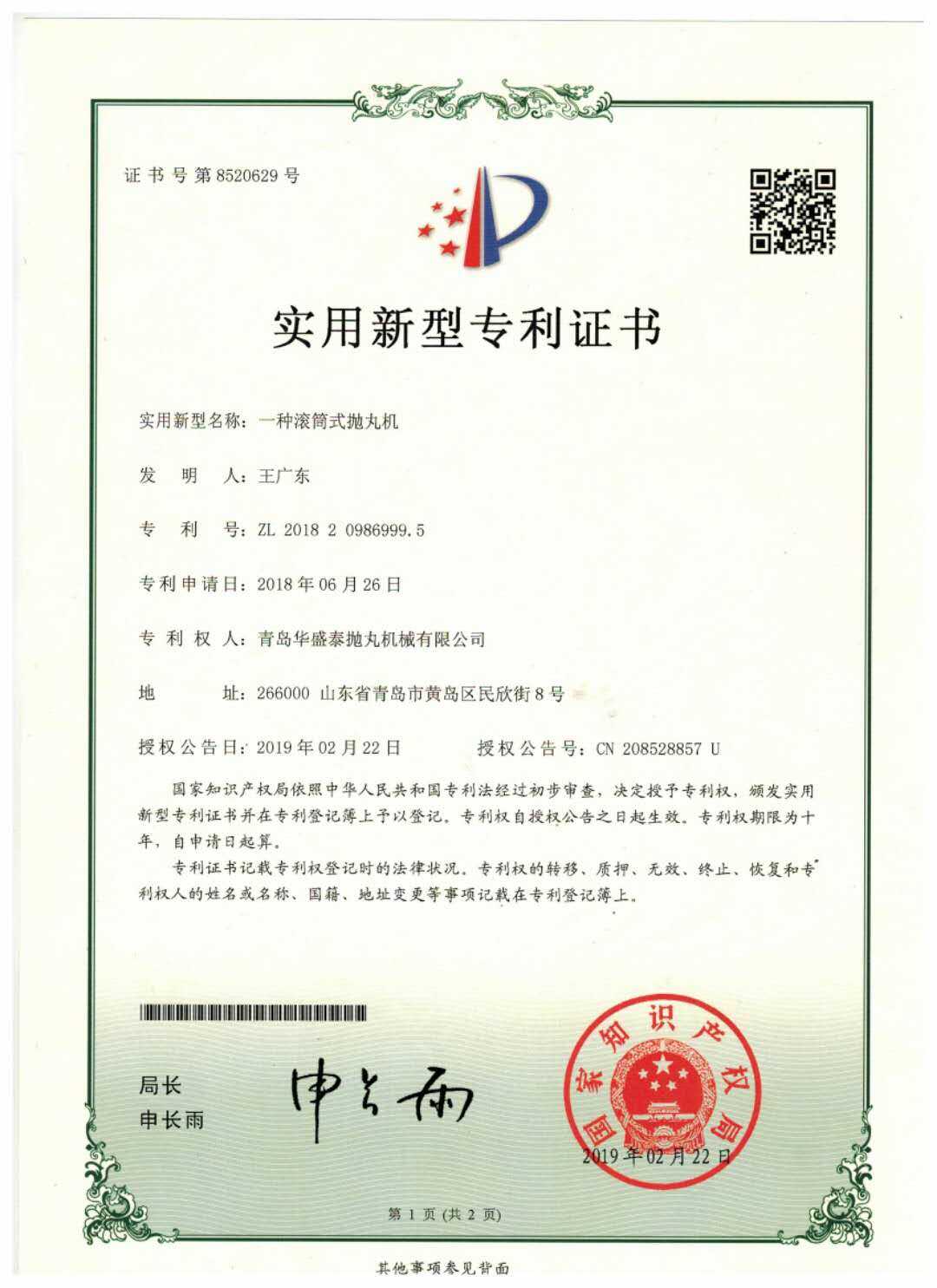 • 實(shí)用新型專(zhuān)利證書(shū)